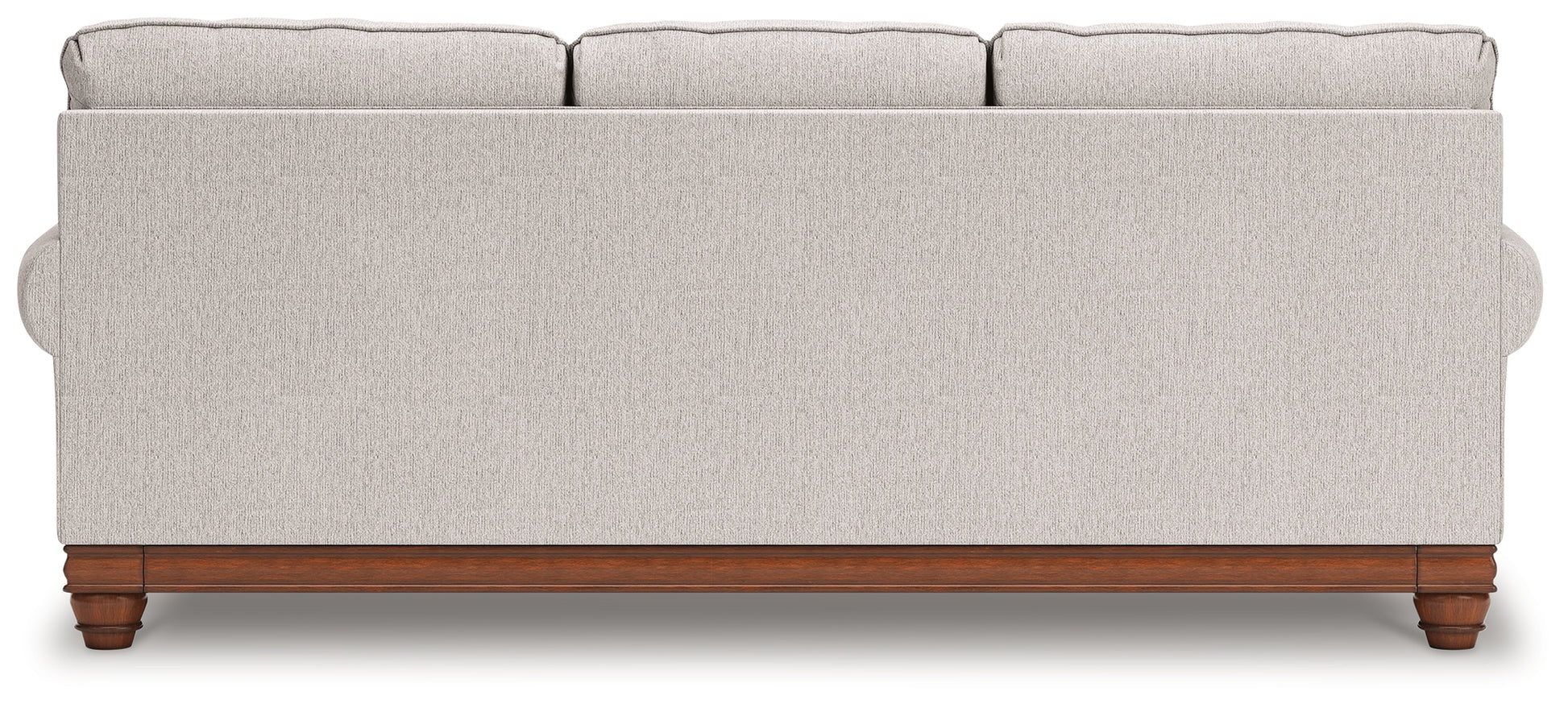 Fresh yet classic. That’s the beauty of this ottoman. Dressy and also soft to the touch, its organic neutral-toned upholstery is sure to bring a transitional farmhouse aesthetic to your living space. A full wraparound base and decorative legs complete the timeless look. It's the perfect place to kick up your feet at the end of a long day.