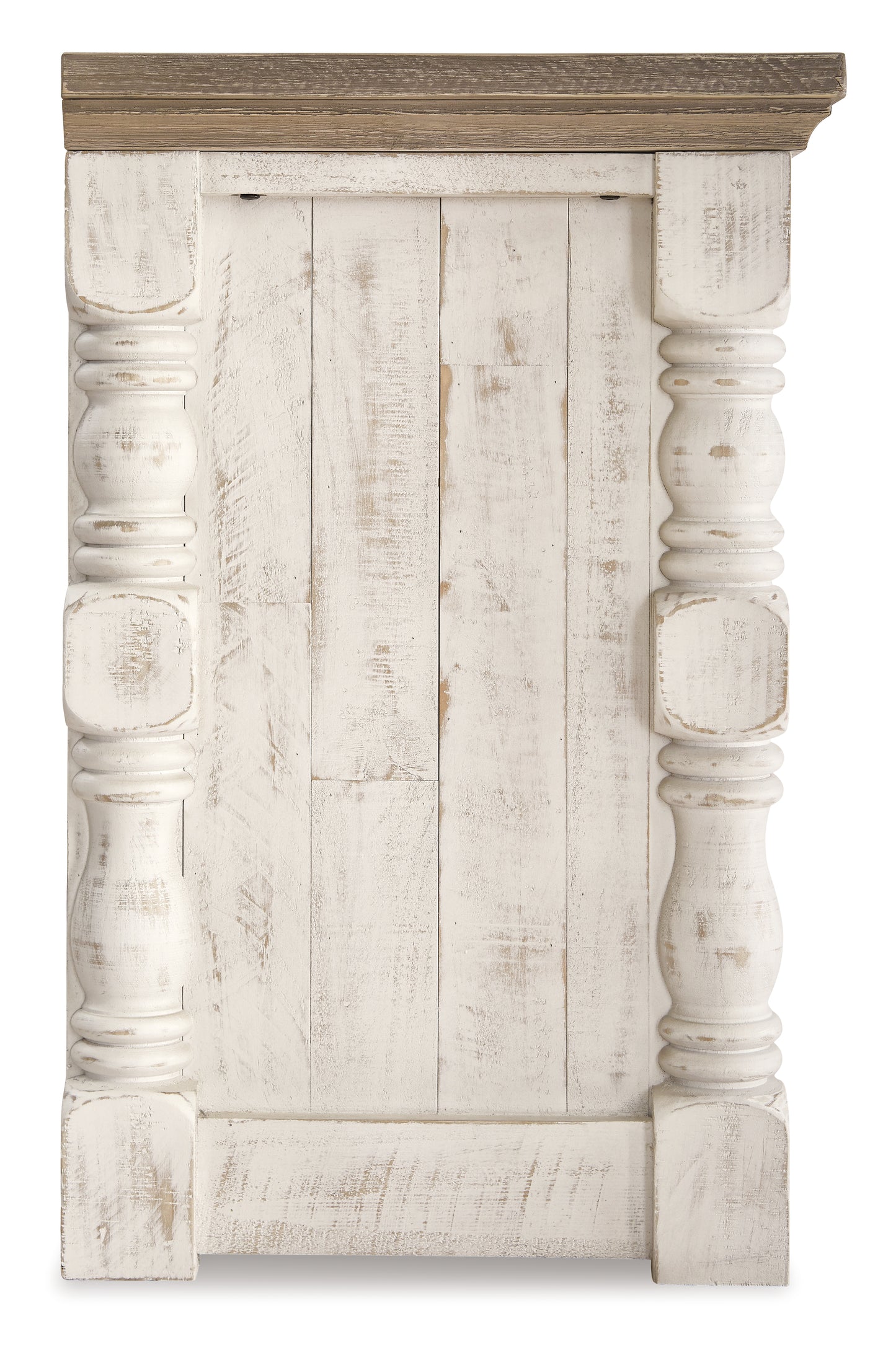 Set your sights on modern farmhouse style with this entertainment center. Distressed two-tone treatment blends a weathered gray with vintage white for an utterly charming effect. Turned posts lend a hearty, substantial look that feels right at home, while plenty of open shelving makes the aesthetic anything but heavy.
