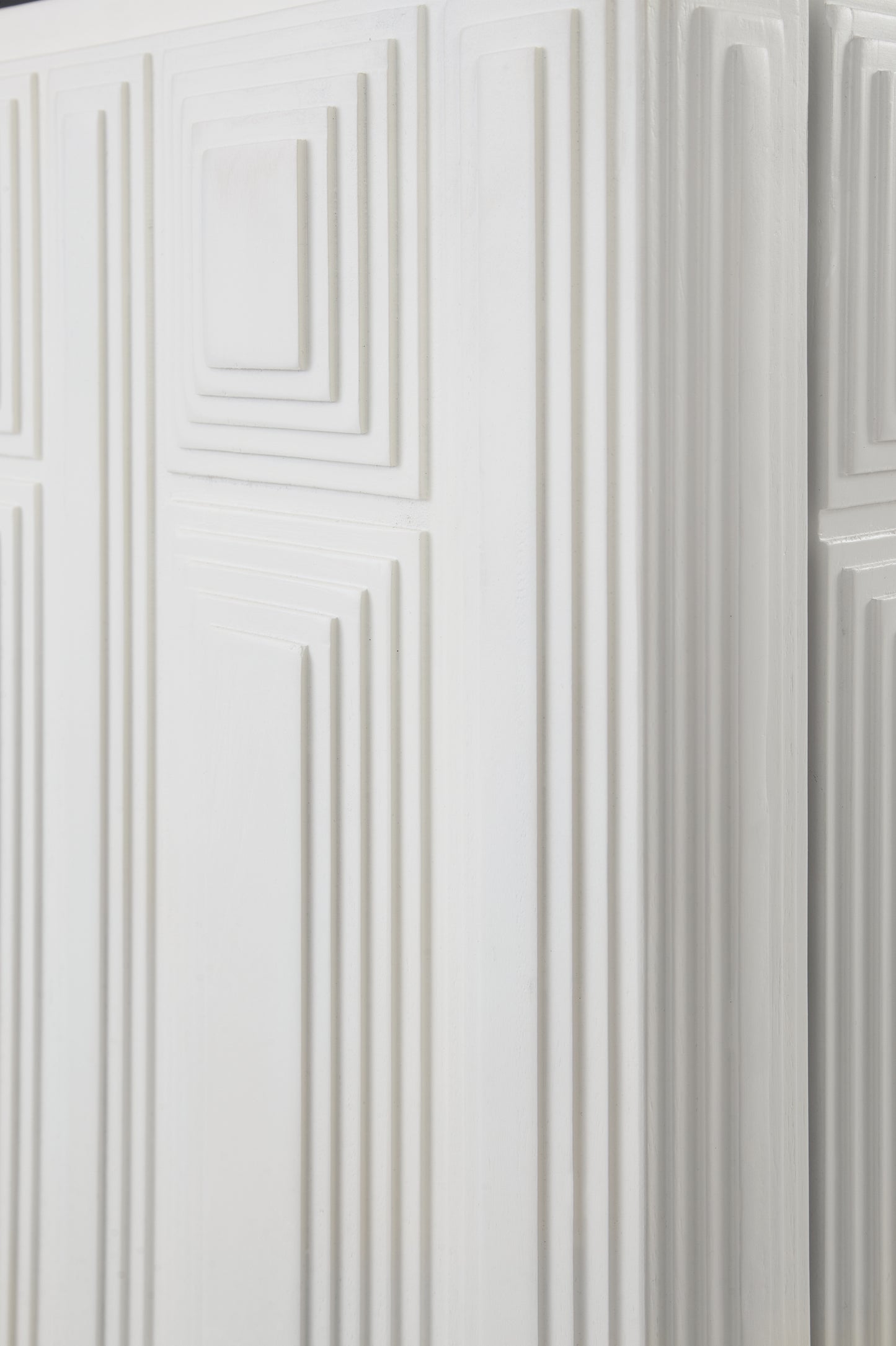 Keep things contemporary cool with the Ornawel accent cabinet. The step pattern on the door fronts lends an appealing geometric touch, with a lightly distressed white finish enriching the design. Touch latch doors open to reveal two shelves for all your storage needs. What a high-style statement.