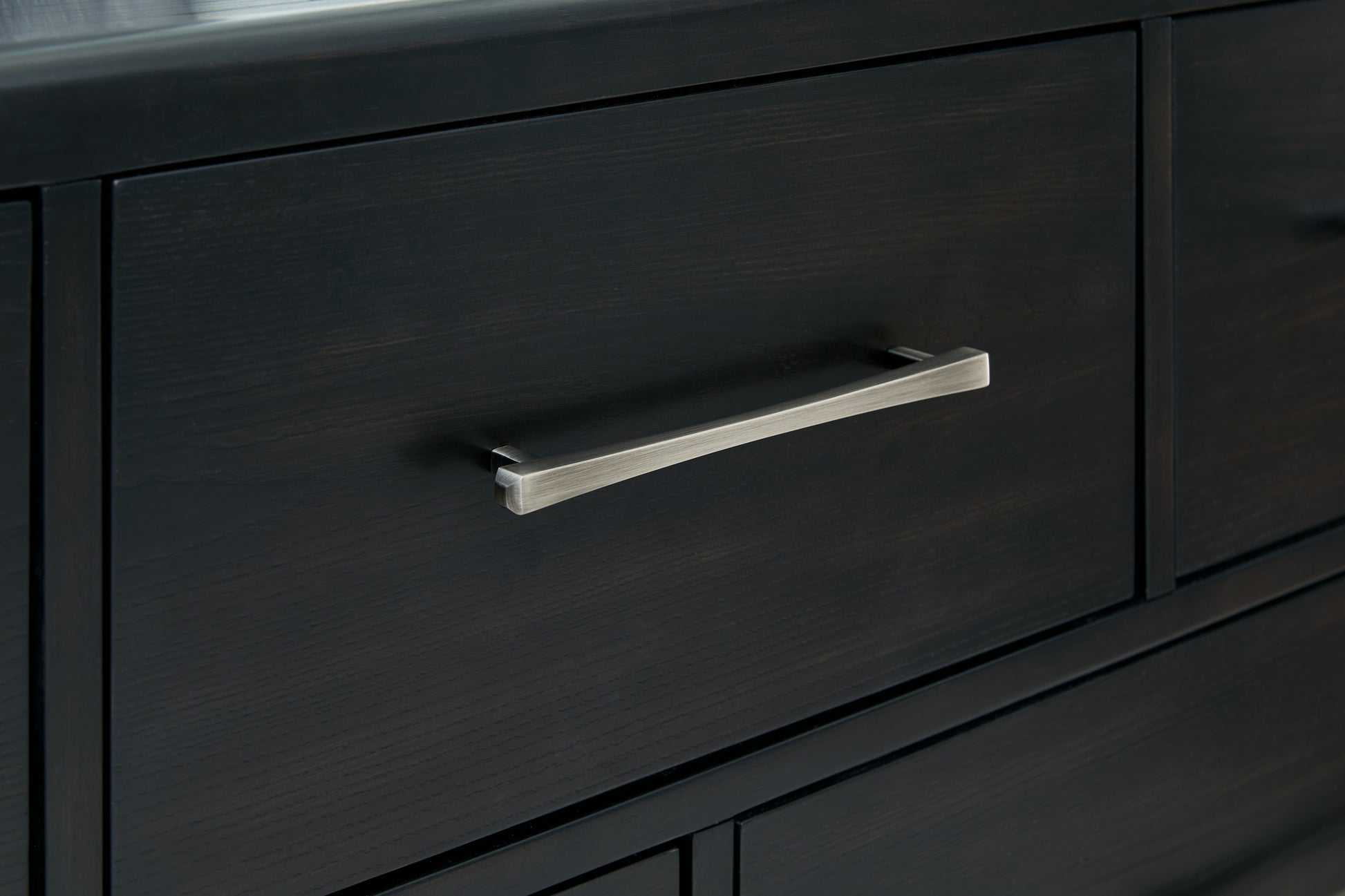 Inspired by art deco design, this softly shaped dresser makes a lasting impression in a simply stunning way. Its magnificent curved silhouette is enhanced by a rich layered black finish on the textured wood grain surface. This is the statement piece you’ve been dreaming of to elevate your contemporary inner sanctum.