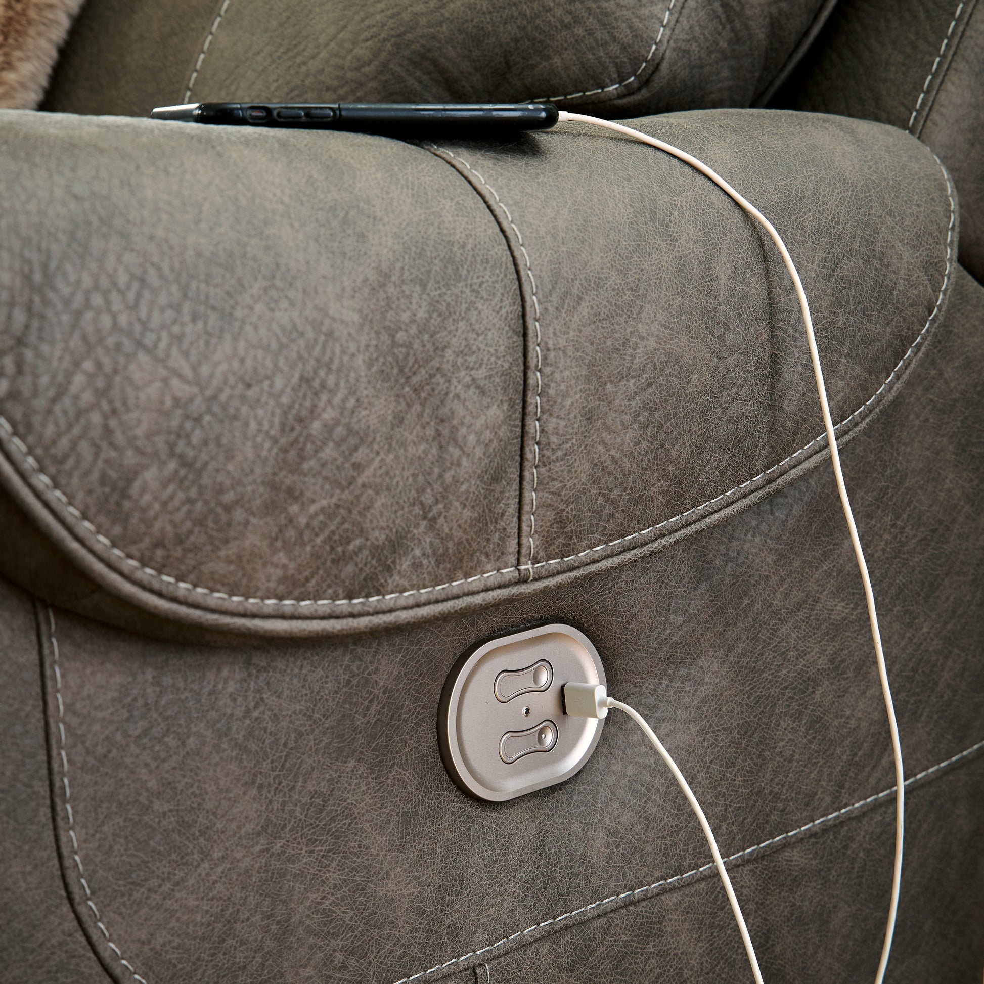 Destination: chic comfort. This power reclining sofa launches your living room into superior form with stellar attention to detail. Exemplifying attainable luxury, its handsome hue has an air of sophistication you’ll long to lounge in. And when you’re done basking in the glow of its sleek style, recline with indulgent motion features to welcome head-to-toe relaxation.