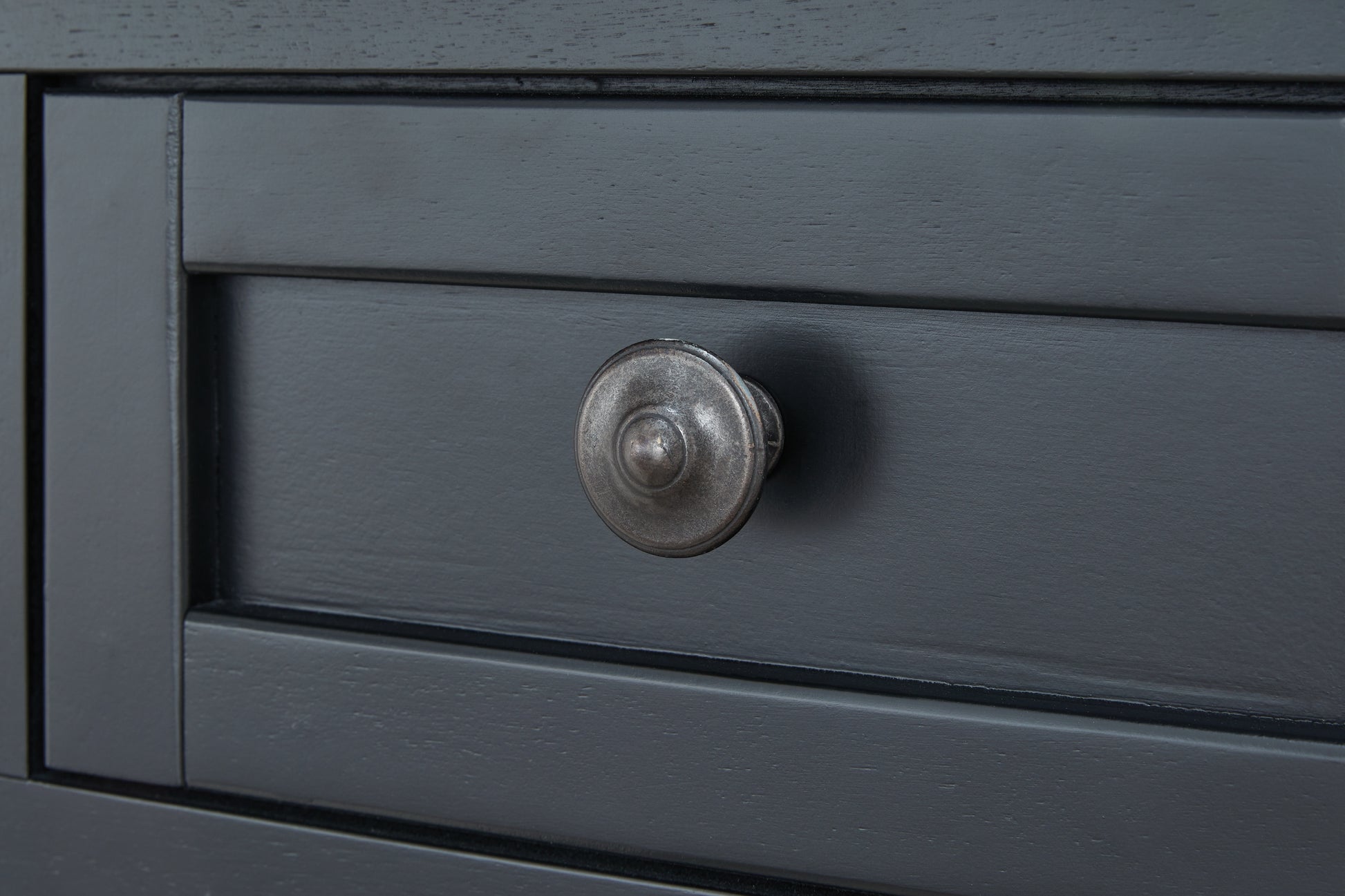- Hardware with dark pewter-tone finish