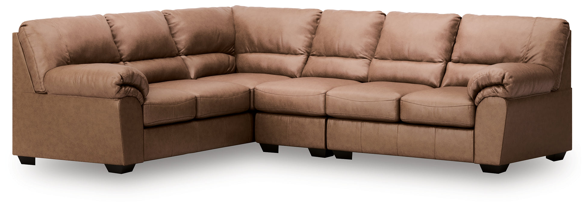 Modern comfort never looked so good. Sporting supremely soft yet durable cushions accented with high-fashion jumbo stitching, this stunning sectional is the ultimate choice in comfortably cool, contemporary style. Its caramel-hued faux leather indulges with an upscale feel and wows like the real thing.